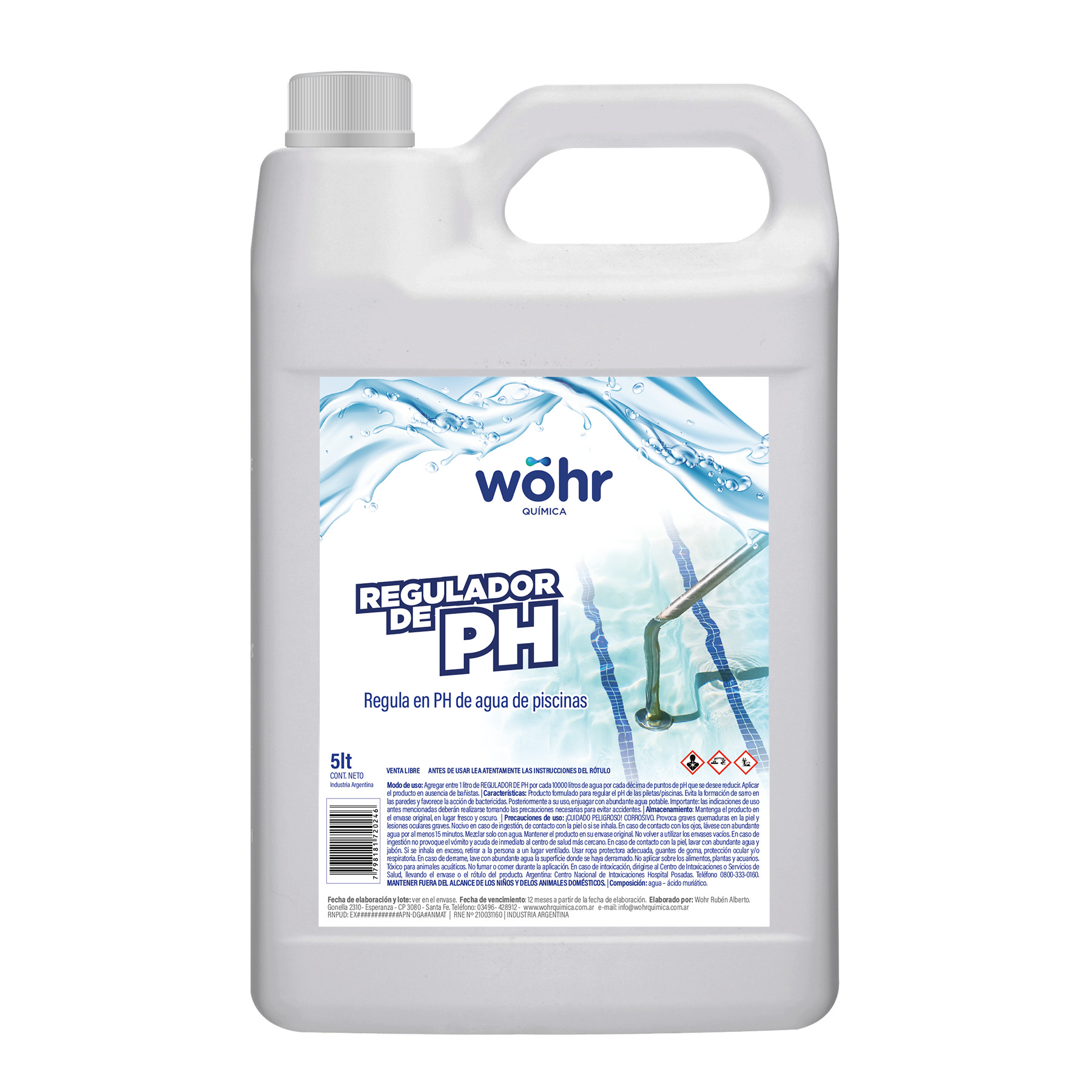 Modo de uso: Agregar 1 L de Regulador de pH por cada 10.000 L de agua por cada 0,1 puntos de pH que se desee reducir. Aplicar sin bañistas presentes.
