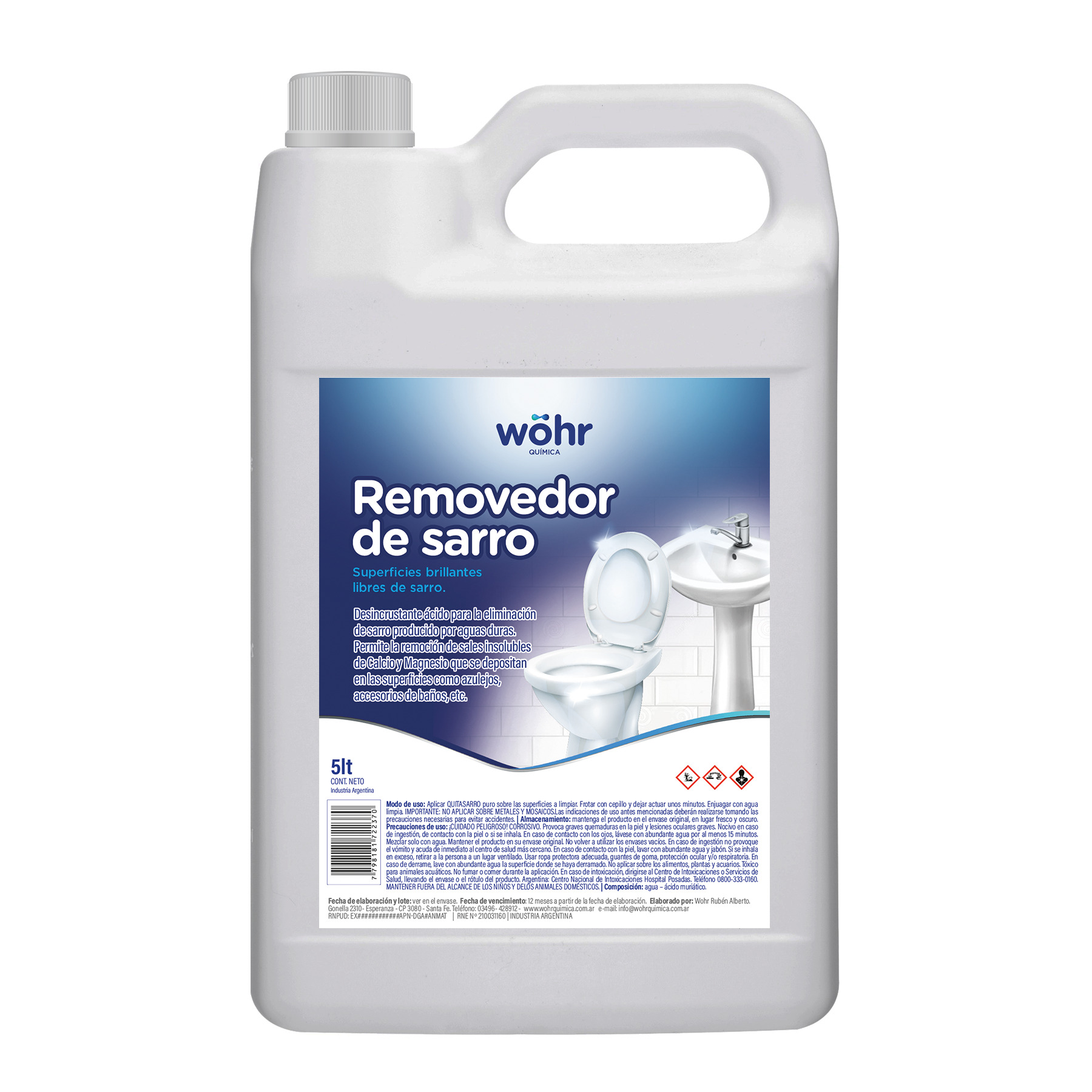 Nuestro removedor de sarro es un desincrustante ácido diseñado para eliminar eficazmente el sarro producido por aguas duras. Disuelve las sales insolubles de calcio y magnesio presentes en superficies como azulejos y accesorios de baño, dejándolos limpios y brillantes.